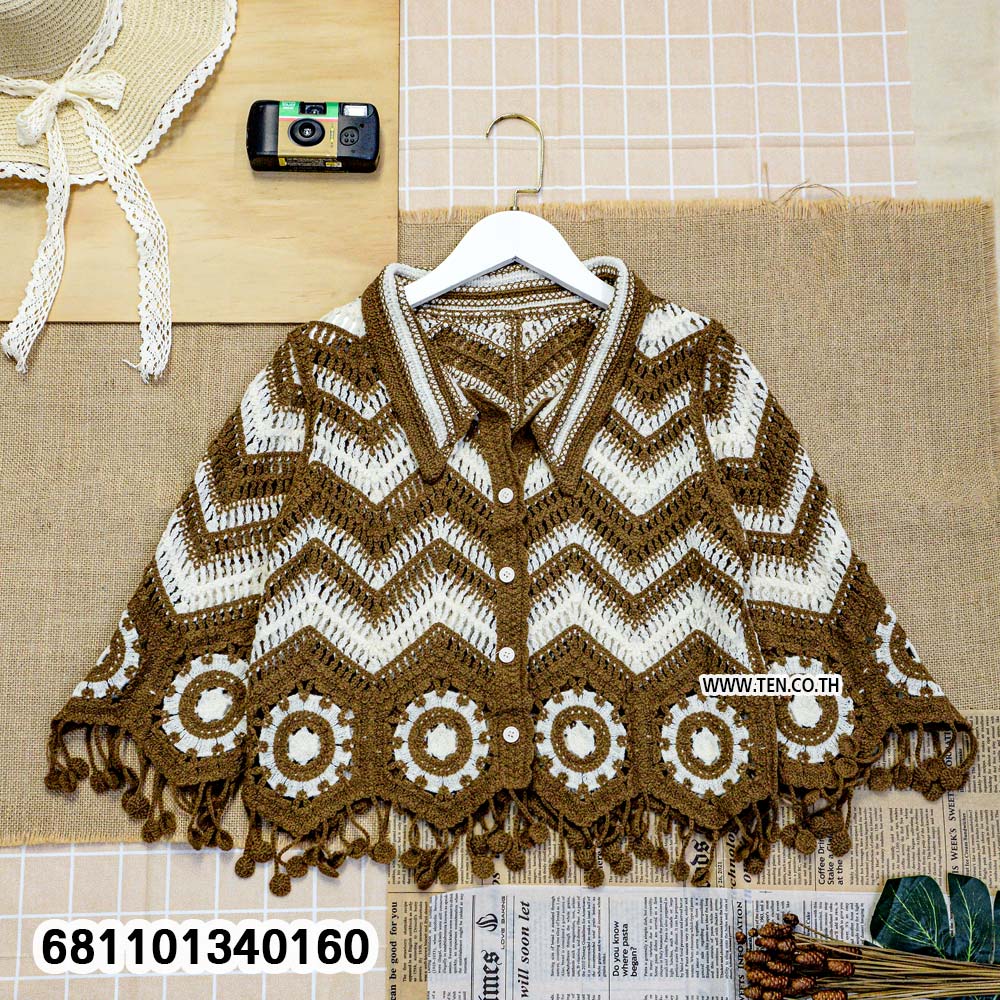 #HandmadeCrochet #CrochetBlouse #BohoStyle #FringeTop #VintageLook #SummerOutfit #เสื้อโครเชต์ #เสื้อแฮนด์เมด #เสื้อสไตล์โบโฮ #เสื้อวินเทจ #tendesigngarment #wholesale