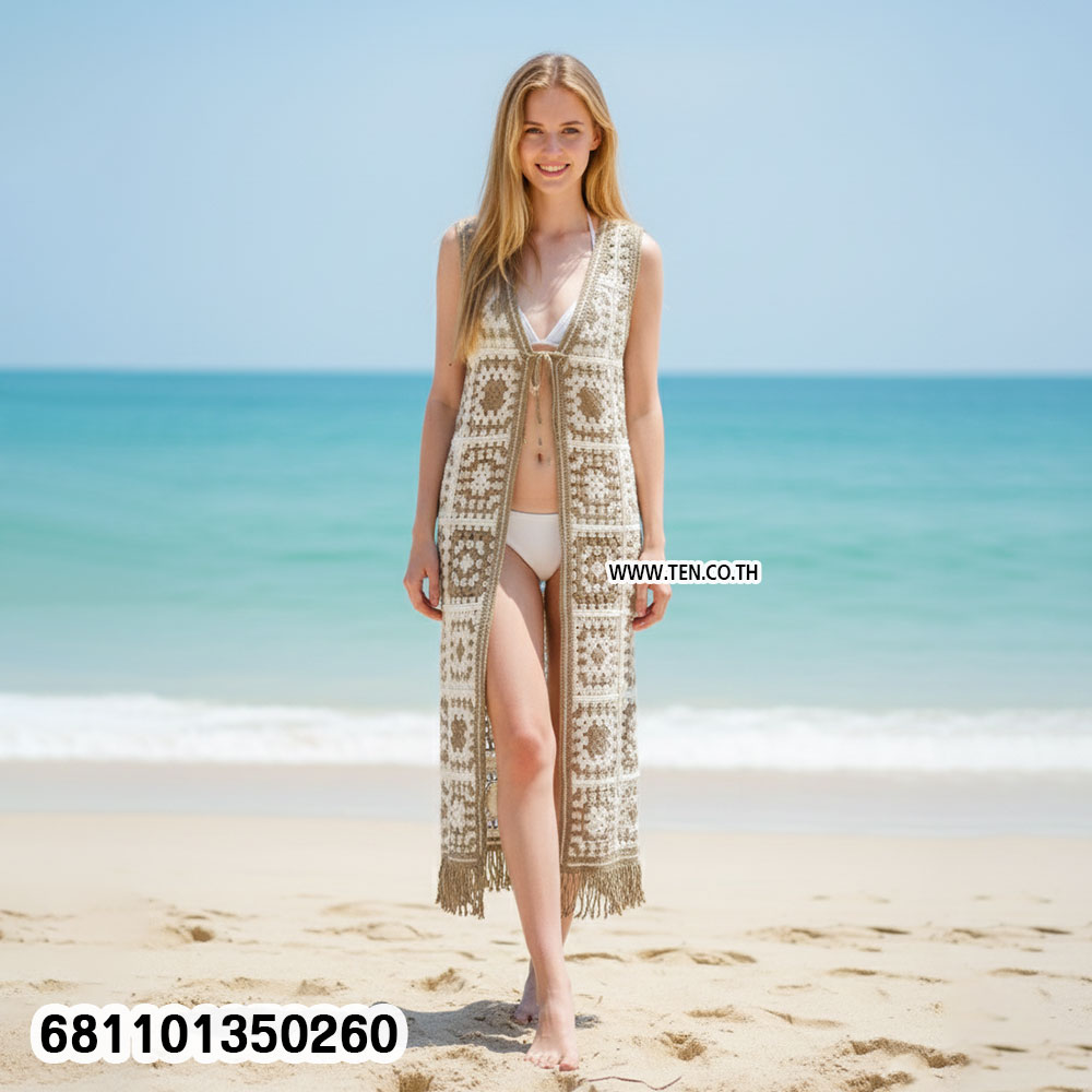 เสื้อคลุมโครเชต์ยาวดีไซน์โปร่ง ลายถักสวยสไตล์โบโฮ ให้ลุคชิลๆ แบบซัมเมอร์ ใส่คลุมบิกินี เดรส หรือเสื้อกล้ามก็สวย เพิ่มความมีเลเยอร์แบบไม่ร้อน เหมาะทั้งวันเที่ยวทะเล คาเฟ่ หรือลุครีสอร์ทสบายๆ