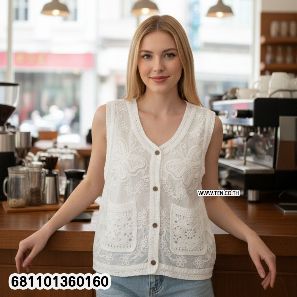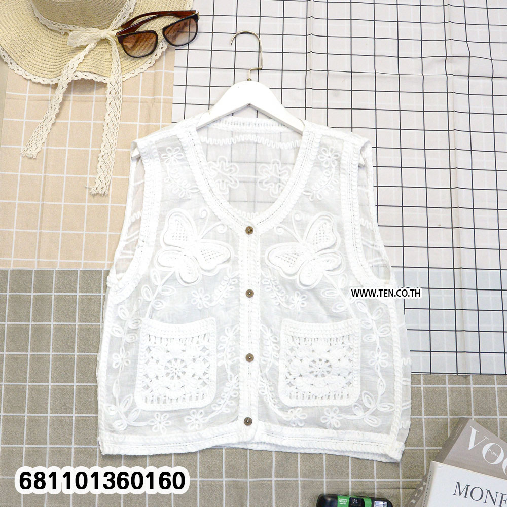 เสื้อกั๊กลูกไม้ปักลายผีเสื้อ ดีไซน์หวานคลาสสิก เหมาะสำหรับเลเยอร์ลุคทุกฤดูกาล ใส่ง่าย เพิ่มมิติให้การแต่งตัว จะจับคู่กับเดรส เสื้อสายเดี่ยว หรือเสื้อเชิ้ตก็ดูละมุน ลูกไม้โปร่งเบา สวมสบาย ให้ฟีลวินเทจผสมโบโฮอย่างลงตัว เหมาะทั้งลุควันสบายๆ และลุคถ่ายรูปแฟชั่น