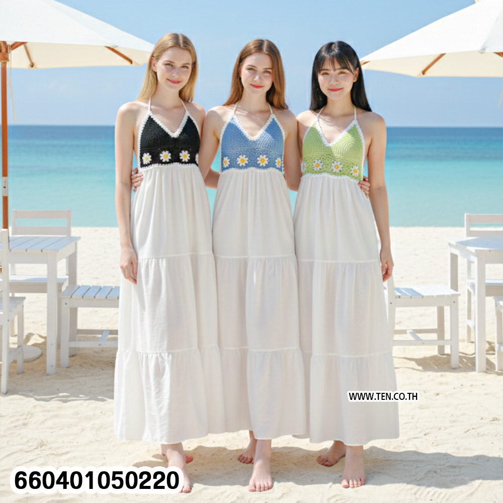 #SummerCrochetMaxiDress #CrochetFloralDress #BohoMaxiGown #PastelCrochetTop #ResortWearStyle #BeachDressOutfit #SummerFashion2025 #VacationDress #WholesaleFashion #ThailandBrand